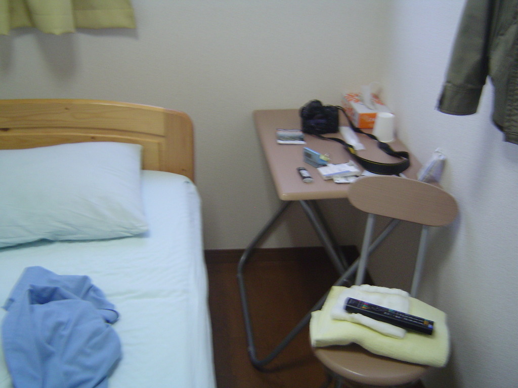 [(사진-48) 신오사카역에서 코인라커에서 짐을 찾아 도로 미도스지선 지하철을 타고 도부츠엔마에역으로 내려오니 바로 라이잔 호텔입니다. 2000엔에 사전 예약을 하였읍니다. 짐이 무겁게 느껴져 호텔 근처와 호텔 촬영도 못하고 바로 침대로 직행입니다. 어느덧 여행의 3/4이 지나갔습니다. 3일간 바쁘게 보냈지만, 귀국일이 다가오니 막연한 불안감에 휩싸입니다. 그래도 하루가 남아 있다고 생각하고 위안 삼아 잠에 곯아 떨어집니다]