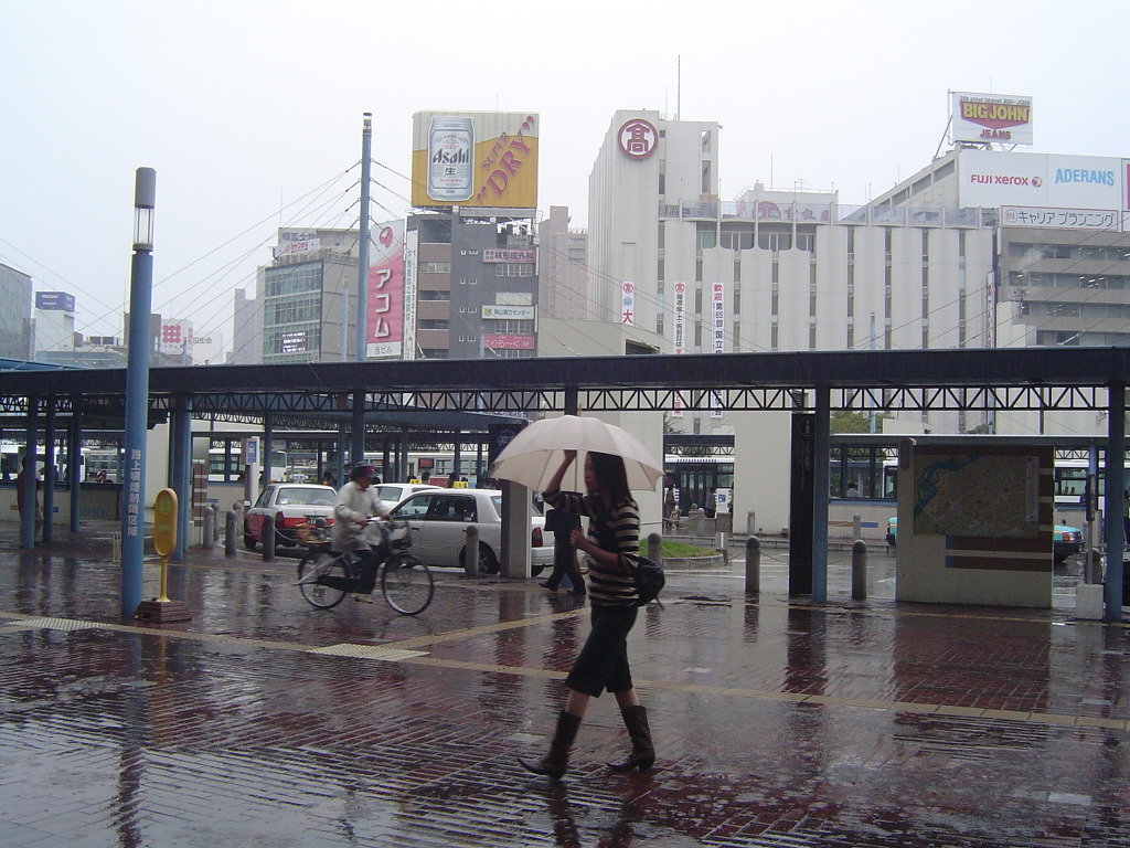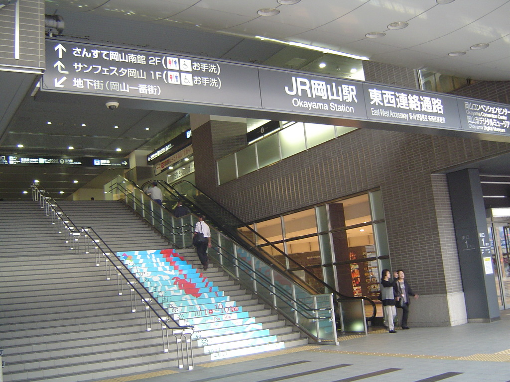 [(사진-04) 오카야마역까지 도보로 5분밖에 안 걸립니다. 하늘이 잔뜩 흐린 것이 오늘은 비가 온다고 합니다. 마음도 우울해 지고, 사진 배경도 칙칙하게 나올 것 같고, 무릎은 계단을 내려갈때 더욱 쑤십니다.]