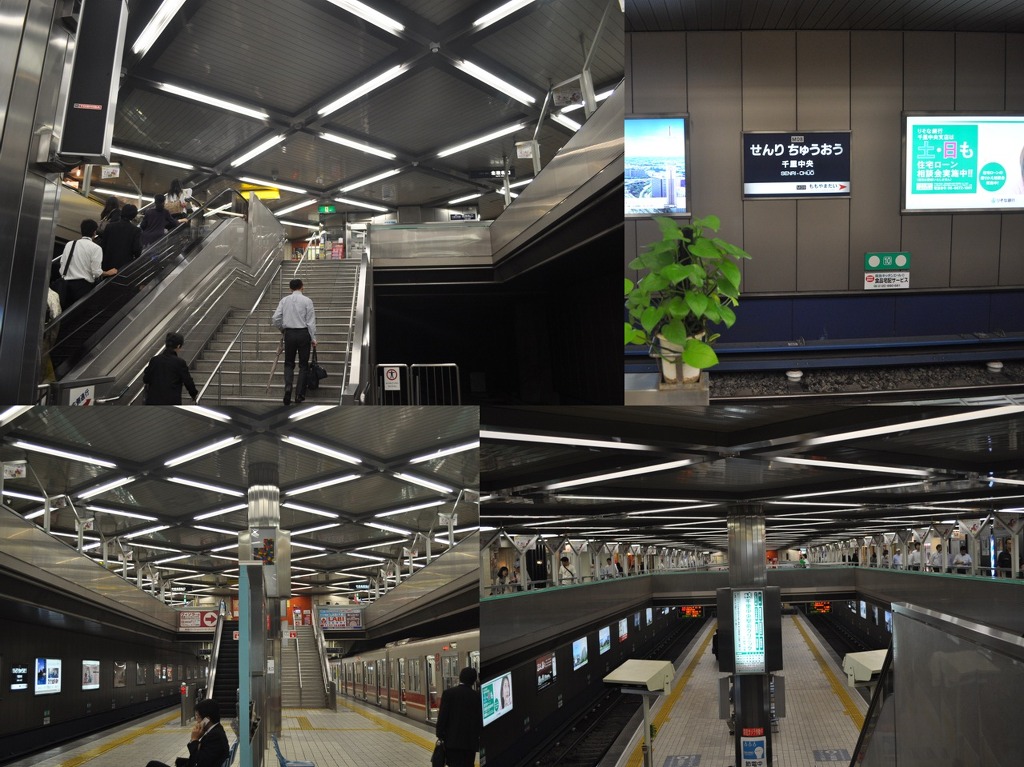 [(사진-24) 센리츄오역에 도착해서 급하게 오사카 모노레일로 환승하러 가는데, 으헉-이 역사내 형광들도 예사롭지 않습니다. 들뜬 마음에 형광등을 여러 구도로 촬영을 합니다]