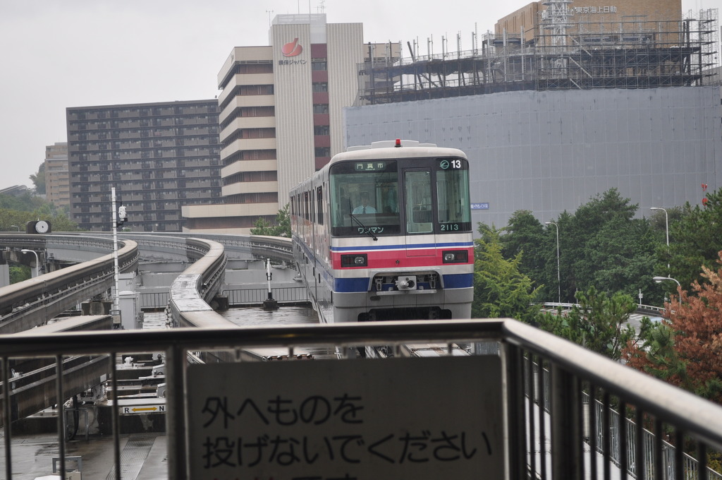 [(사진-27) 모노레일 역사로 올라갑니다. 우와 제가 타고갈 모노레일이 들어오고 있습니다. 도쿄 유리카모메와는 또 다른 느낌의 모노레일을 다시 보니 감개 무량입니다. 게다가 모노레일 편성 촬영을 겸하니 시간이 가도 아깝지 않습니다]
