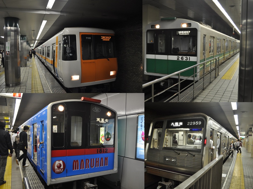 [(사진-40) 역전온천들을 탐사하는 과정에서 다양한 오사카 지하철 노선에서 다양한 차량들의 편성 작전도 병행되어 이루어집니다]