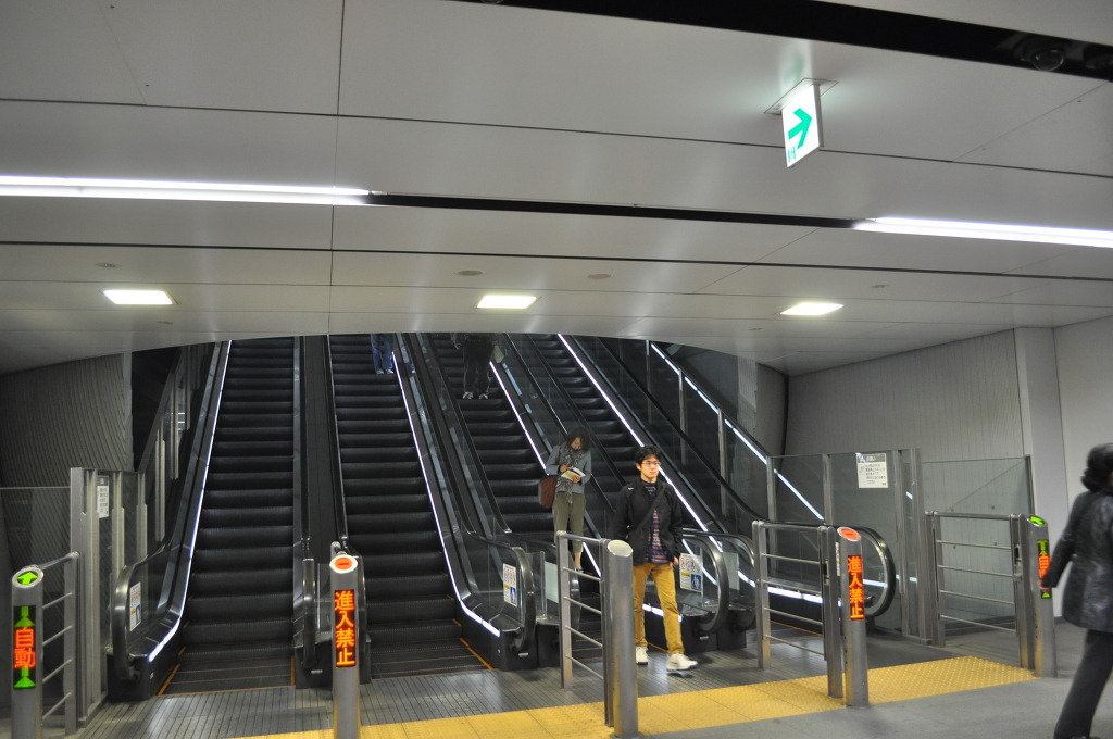 [사진 30] 에스컬레이터에서 내리면 플랫폼이 나오는 것이 아니라 또 하나의 큰 광장이 펼쳐 집니다. 바로 좌우측으로 플랫폼으로 내려가는 에스컬레이터가 있고, 저렇게 주욱 가서 반대편인 덴엔토시선 방향으로 가서 반대편에서 승하차 할 수 있습니다. 또한 화장실 등이 이 층에 설치되어 있습니다.
