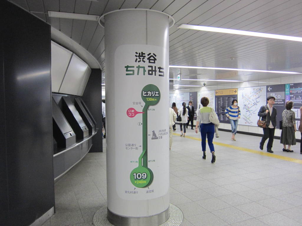 [사진 08] 히카리에 건물과 시부야 중심부를 잇는 축을 중심으로 지상과 지하의 위치 관계까지 표시해 주는 컬러 안내가 곳곳에 되어 있습니다.