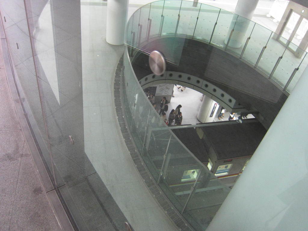 [사진 14] 가까이 다가가서 보니 투명한 지하 전망대 같습니다. 바로 밑 층 역사 내부와 더 한 층 밑의 플랫폼까지 훤히 보이도록 뚫려 있습니다.