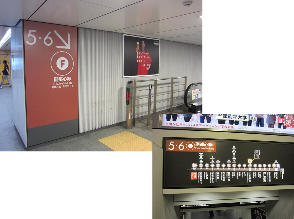 [사진 31] 통로 바닥에는 재차 큰 글씨로 후쿠토신선과 도요코선을 확실히 구분해 주고 있습니다.