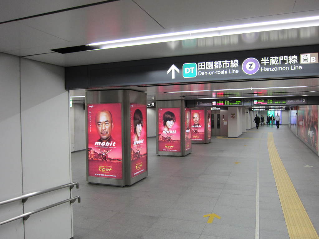 [사진 43] 덴엔토시선 방면으로는 개찰대 밖의 기둥들은 다양한 컬러의 광고들이 기둥을 장식하고 있었습니다.