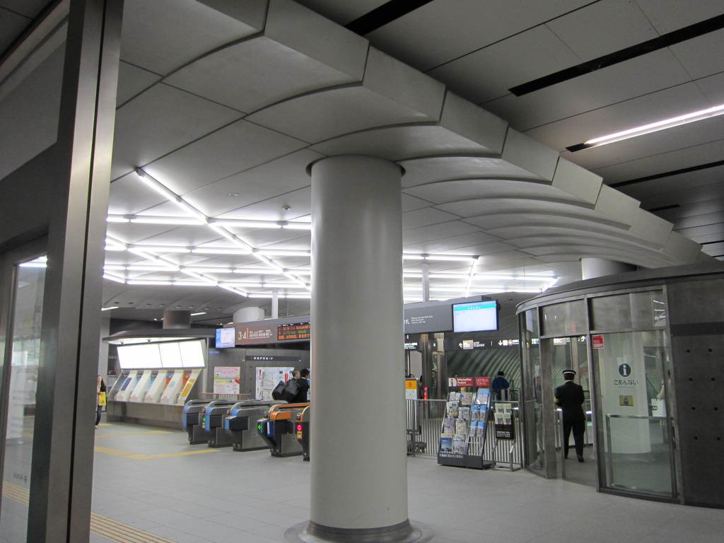 [사진 13] 이제 거의 '히카리에 방면' 개찰대에 다 왔습니다. 저기 왼쪽을 돌면 바로 개찰대가 나오고 여기서 보이는 구조물은 승차권 자동 발권기입니다. 왼쪽으로 돌지 않고 바로 직진하면 저 앞에 또 다른 껍질 같은 구조물이 있습니다. 그 쪽으로 가 봅니다.