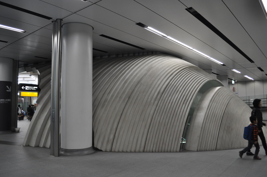 [사진 24] 소라 껍질을 한 바퀴 주욱 돌아 보았습니다. 이 역시 안도 타다오 건축의 특징이라고 합니다. 안도 타다오씨는 이 구조물을 시부야역의 핵심 상징으로 언급하는 것 같으며, '지주선(地宙船; 지하의 우주선)'이라고 명칭을 언급하였습니다.