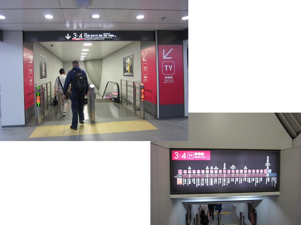 [사진 32] 지난 편에 보여드렸던 도요코선 입구입니다. 표지판 색채와 노선도 등의 다지인도 매우 멋집니다.