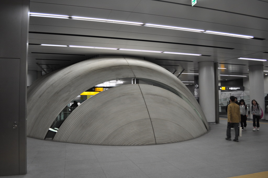 [사진 16] 열차 플렛폼에 내려가서 반대 방향, 즉 위를 보고 촬영하면 이 같은 구도가 되겠습니다. 이 같은 건축물도 안도 타다오 설계의 중요한 부분이라고 합니다.