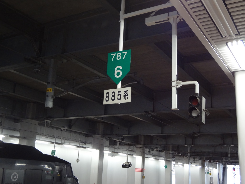 [사진 1-293] 특급 열차의 승차 위치를 보여주고 있습니다. 여기서는 787계 6호차를 탈 수 있습니다.