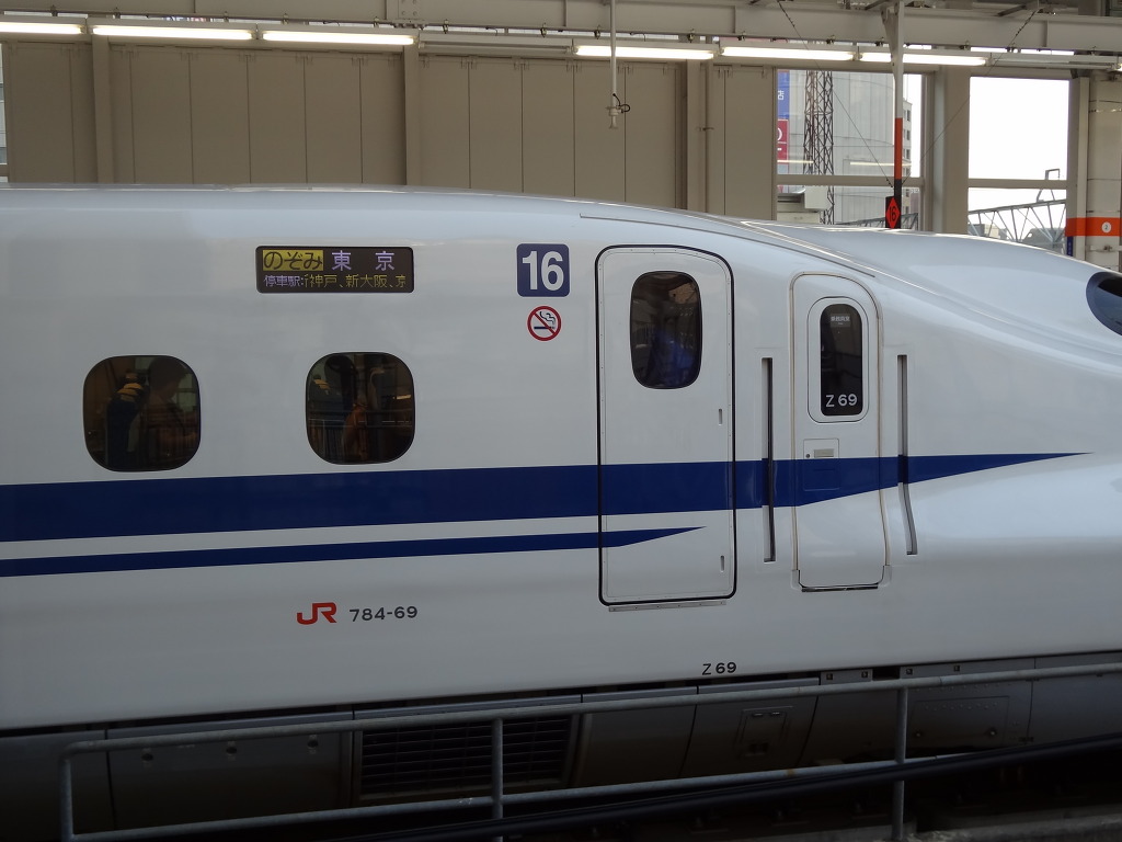 [사진 1-282] 노조미 58호 Z69편성을 다시 한 번 찍습니다. 사진 오른쪽 위에 있는 전광판에 58이라고 적혀 있는 것은 처음에는 무엇인지 몰랐는데 나중에 확인해보니까 열차번호 (노조미 xx호의 xx) 를 얘기하는 거였습니다.