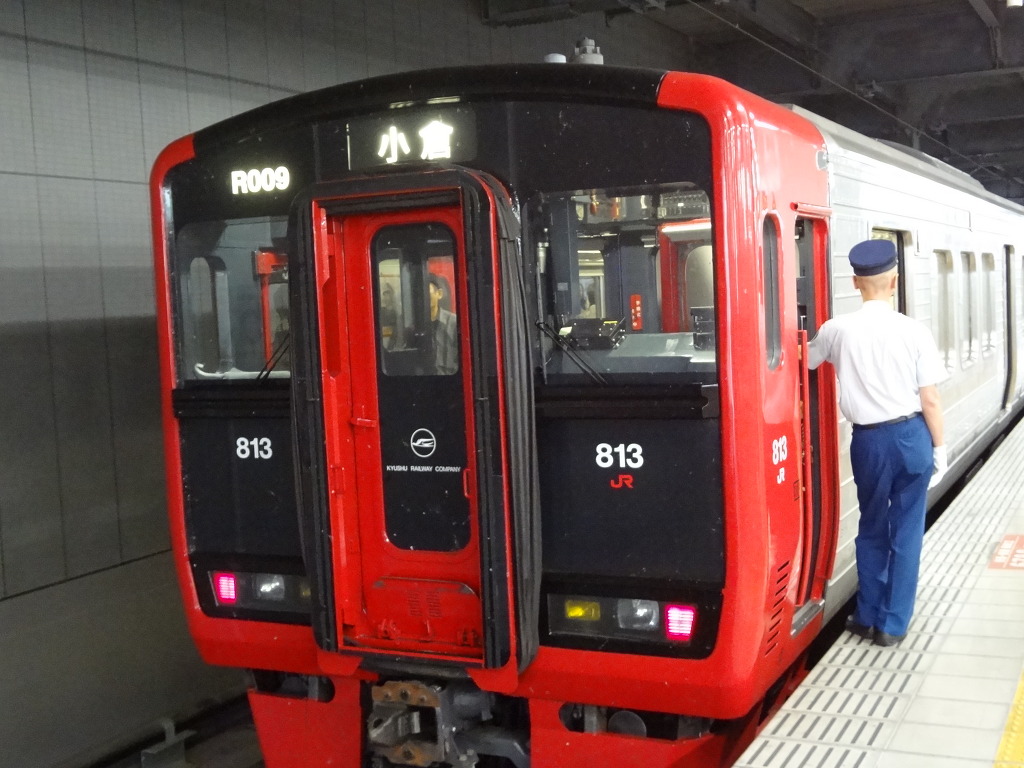 [사진 1-298] 고쿠라행 813계 R009편성 열차가 하카타역에서 대기중입니다.