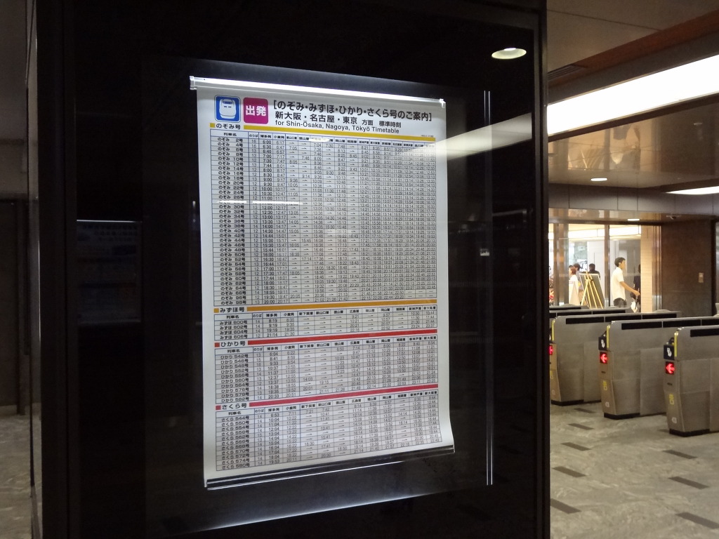 [사진 1-262] 도카이도, 산요신칸센 신오사카, 나고야, 도쿄방면 시각표인데