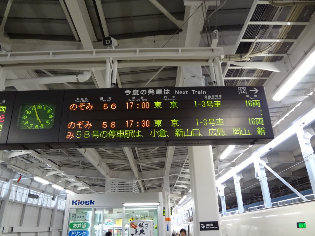 [사진 1-265] 하카타역 12번선 전광판입니다. 노조미 56호는 오후 5시 출발합니다.
