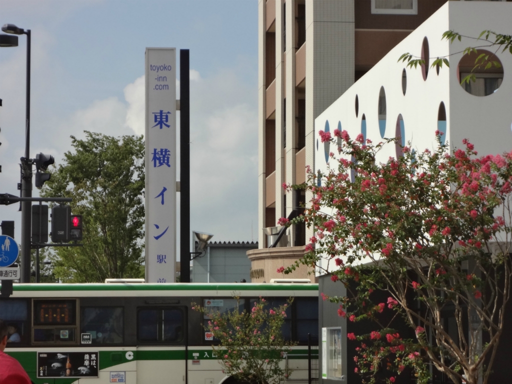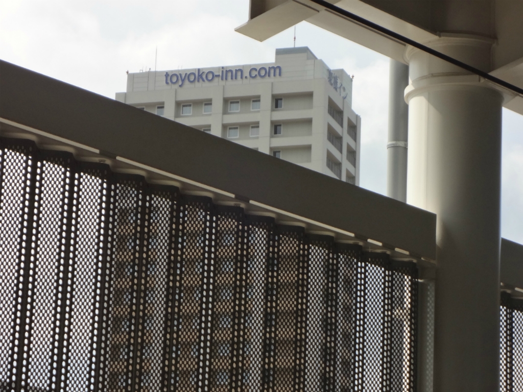 [사진 1-1256] 신칸센 구마모토역 승강장에는 토요코인 구마모토 에키마에가 보입니다. 미야자키역처럼 역에 바로 붙어있는 것은 아닙니다만 구마모토역에서 가깝습니다.