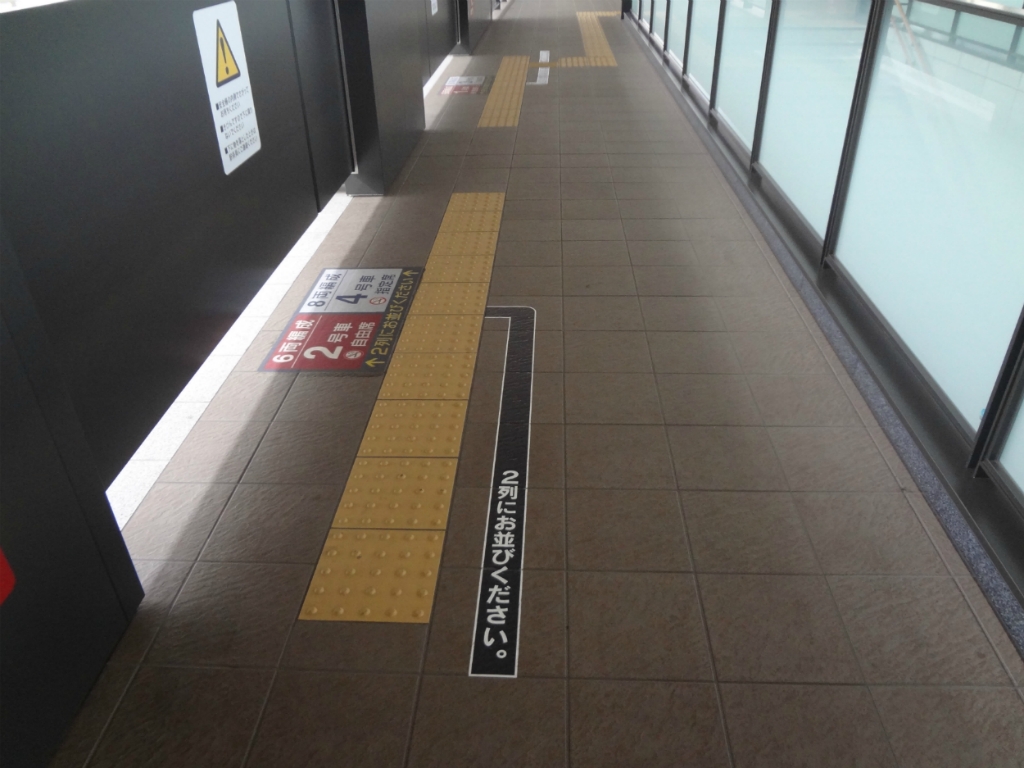 바닥에는 홈도어에 있는거와 똑같은 승차위치와 2열로 서달라는 문구가 있습니다.