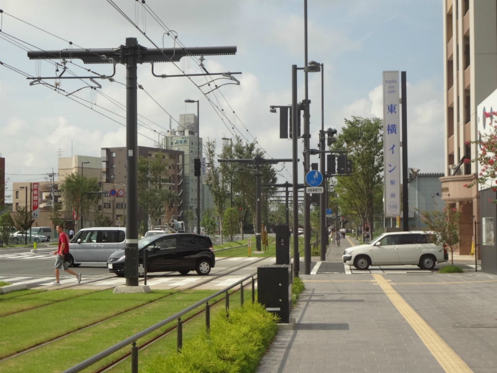 [사진 1-1262] 역 광장으로 나와서 조금만 걷다보면 저 횡단보도가 보이고, 횡단보도를 건너면 바로 토요코인이 보입니다.