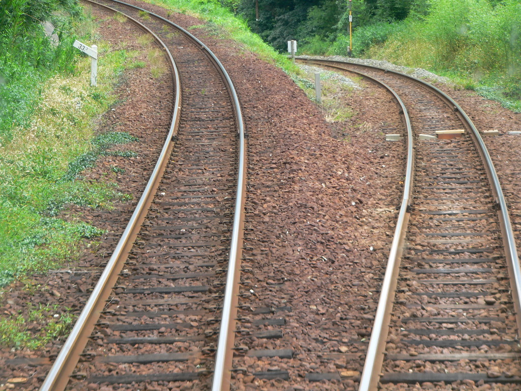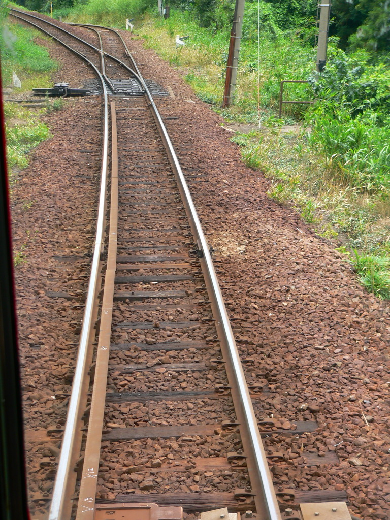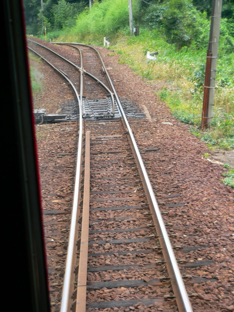 [사진 872] 스위치백은 끝나고 이제 아소/벳푸/오오이타 방면 선로와 합류합니다. 그런데 앞으로 갈 선로의 경사도 33.3퍼밀이나 되는군요;;