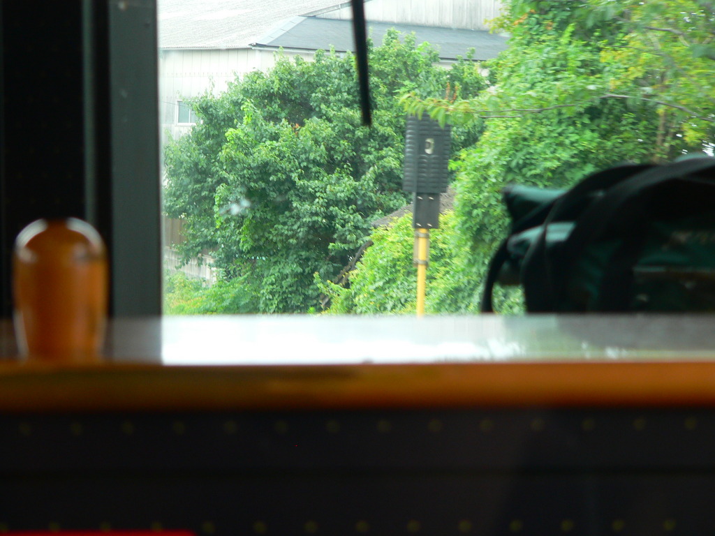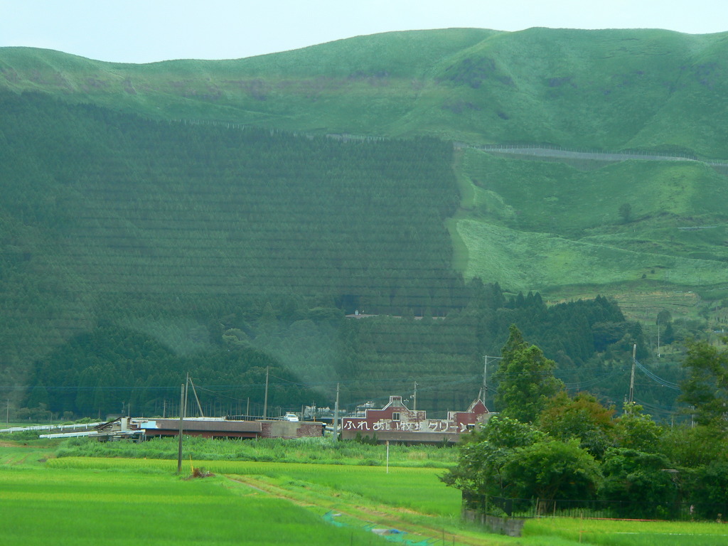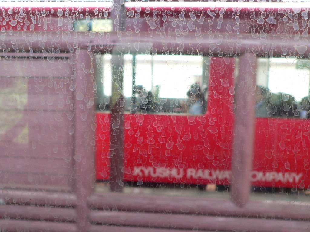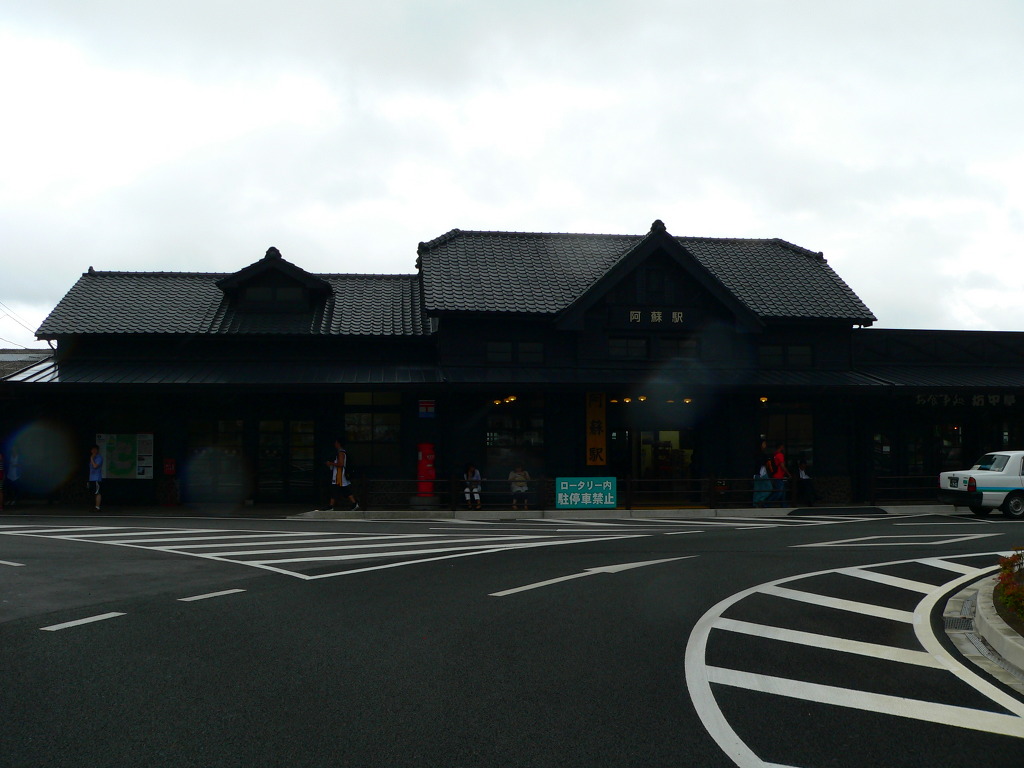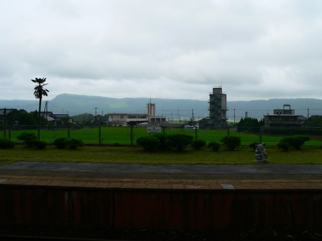 열차가 아소역에 진입할 무렵 갑자기 비가 오기 시작했습니다. 이번 여행을 시작하고 일본에 도착한 뒤로 처음 오는 비였습니다.