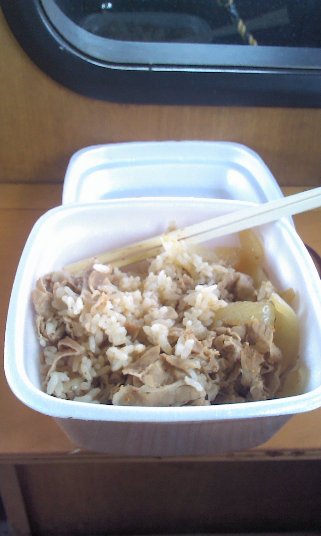 큐슈횡단특급 탑승 전에 구입한 요시노야의 부타동을 먹었습니다. 도쿠모리로 주문해서 그런지 밥도 많고 고기는 오오모리보다 더 많더군요;;