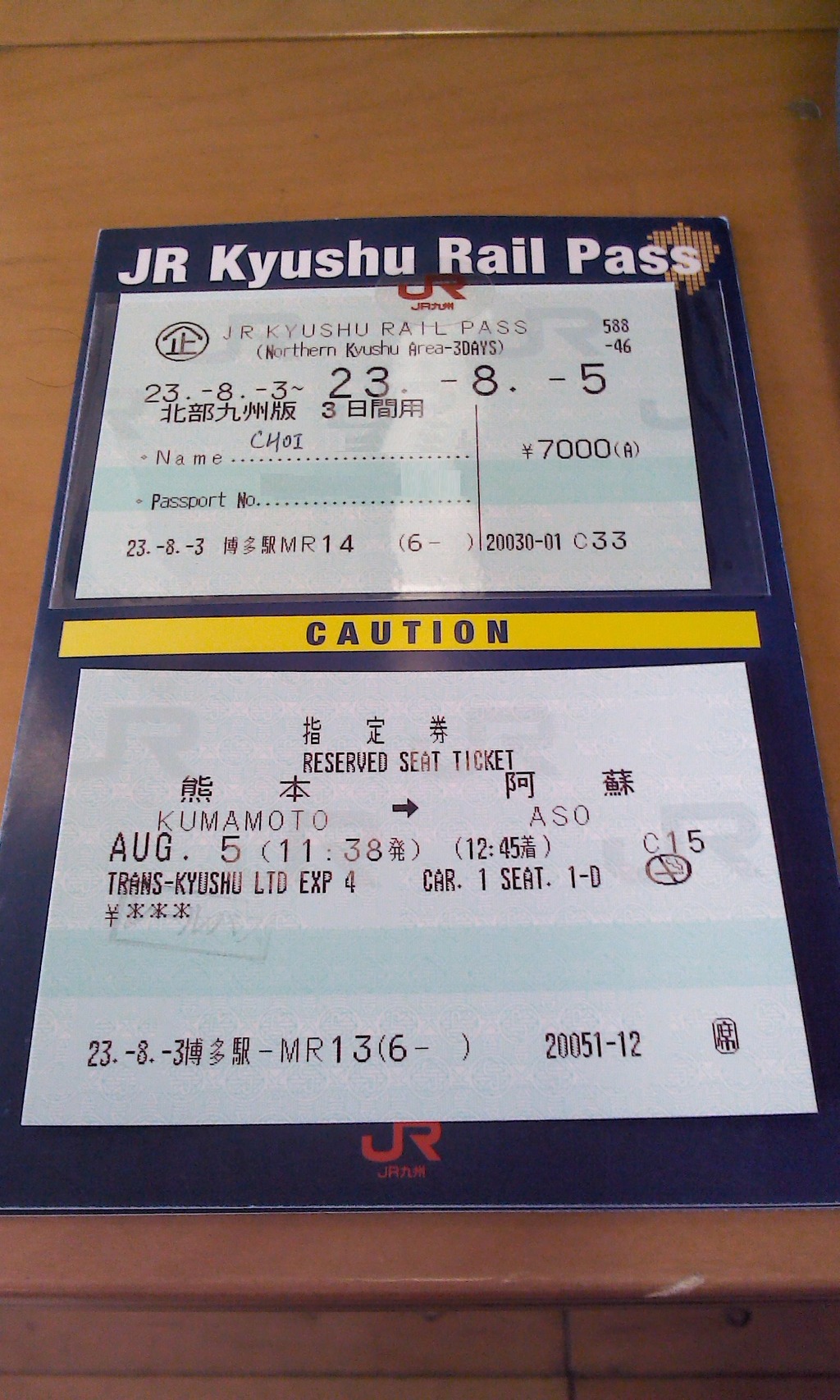 [사진 850] 북큐슈레일패스 3일권과 큐슈횡단특급 4호 쿠마모토-아소간 승차권입니다.