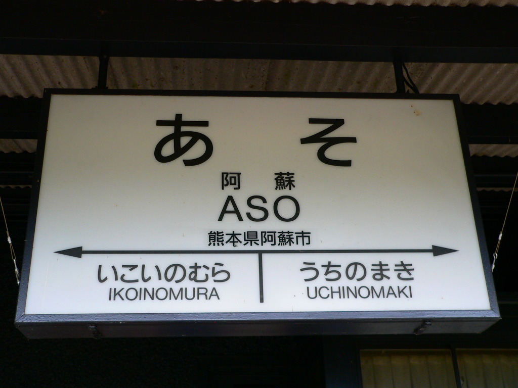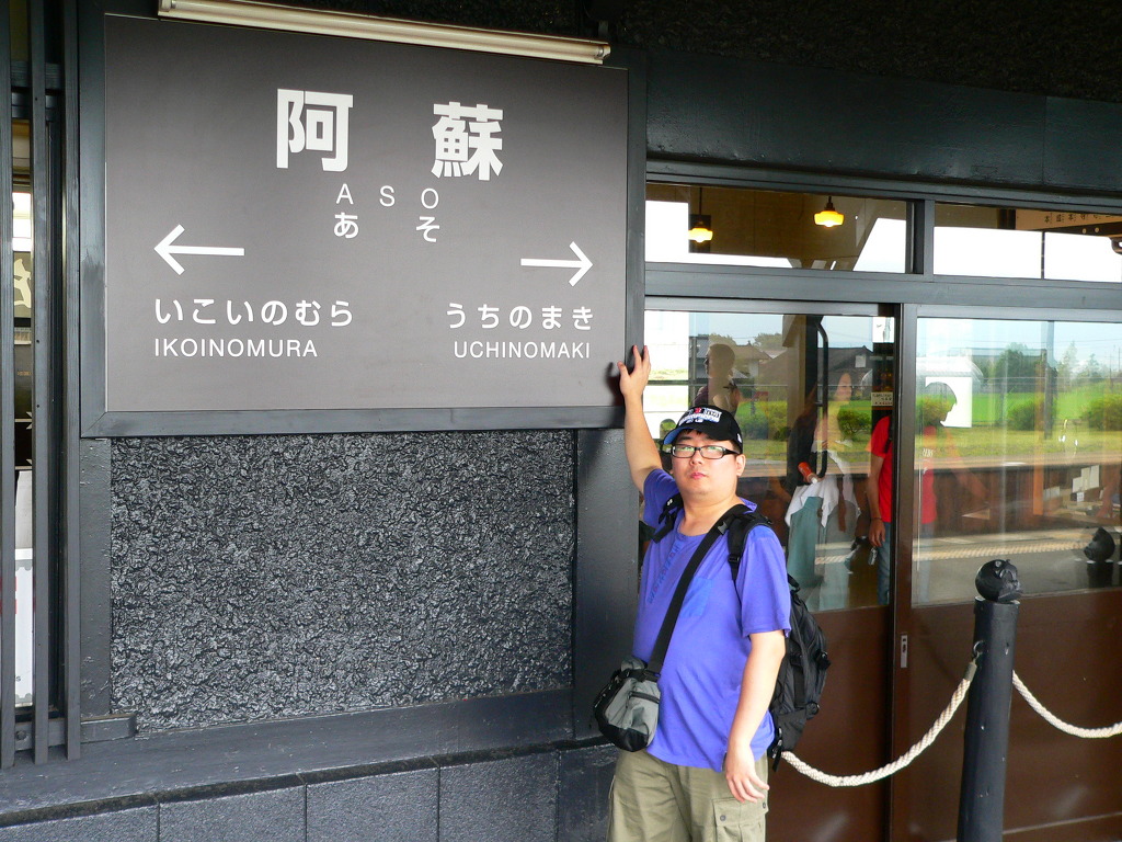 [사진 883] 아소역 역명판을 배경으로 기념사진을 촬영했습니다.