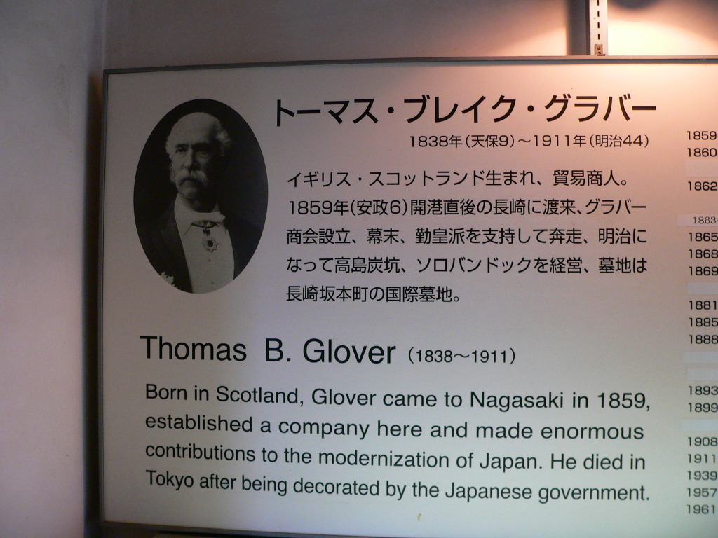 [사진 1626] 토마스 블레이크 글로버에 대한 설명입니다. 1911년 사망 후에는 나가사키 사카모토마치의 국제묘지에 묻혔다고 합니다.