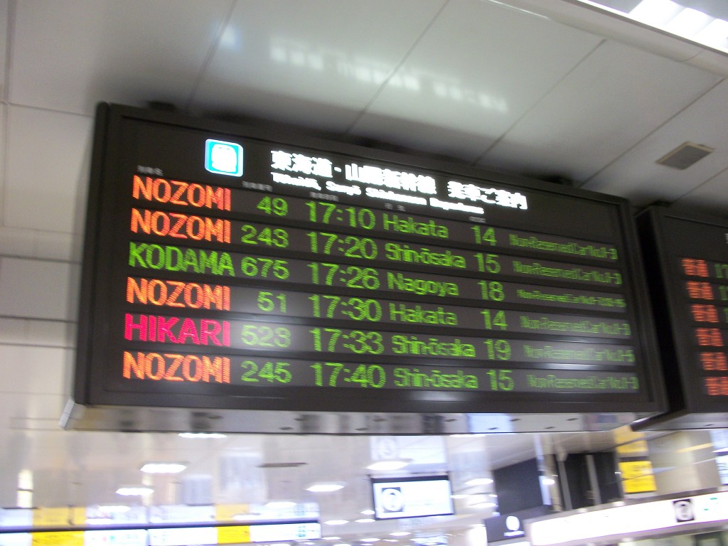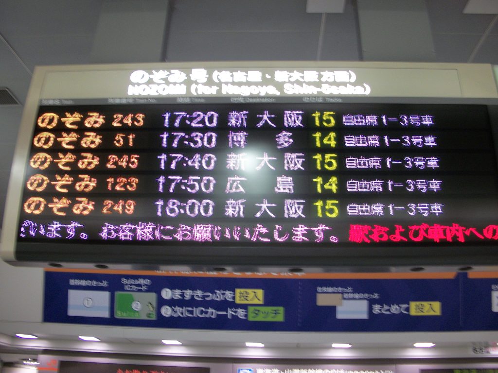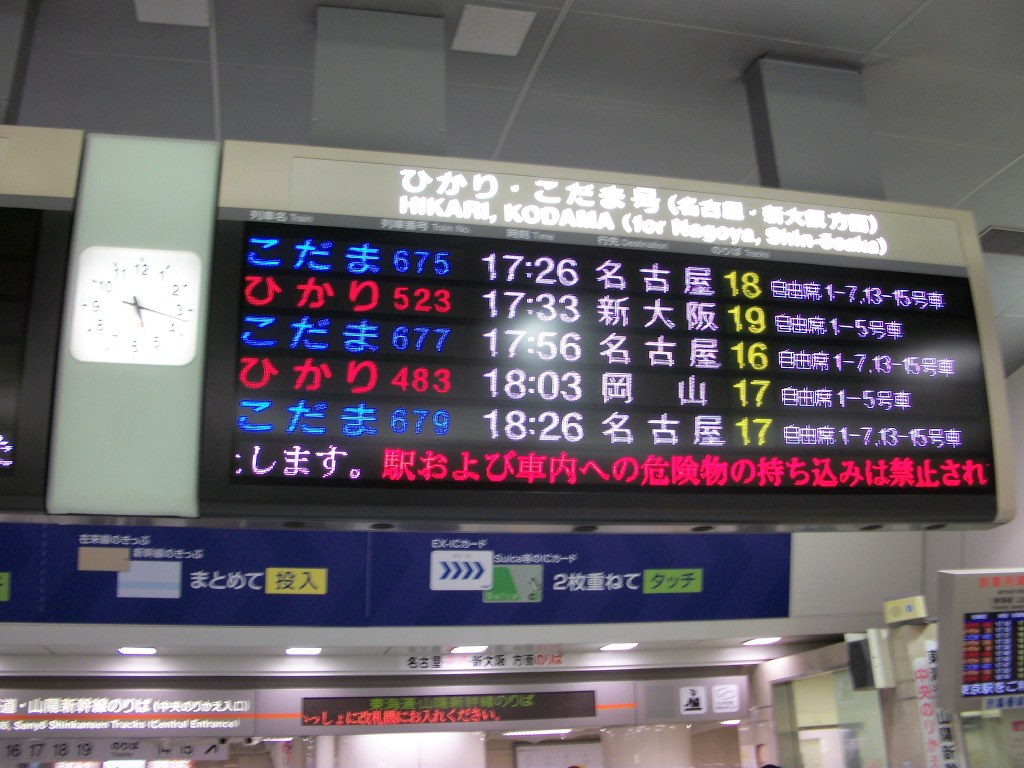 열차안내문을 보면... 히카리 코다마 열차 행선판과...