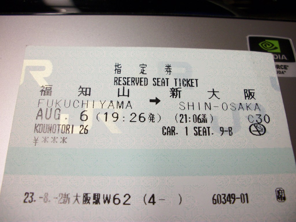 | 특급코노토리 | 26호 | 후쿠치야마 | 오사카 | 지금까지지출액 | 6136엔 | |