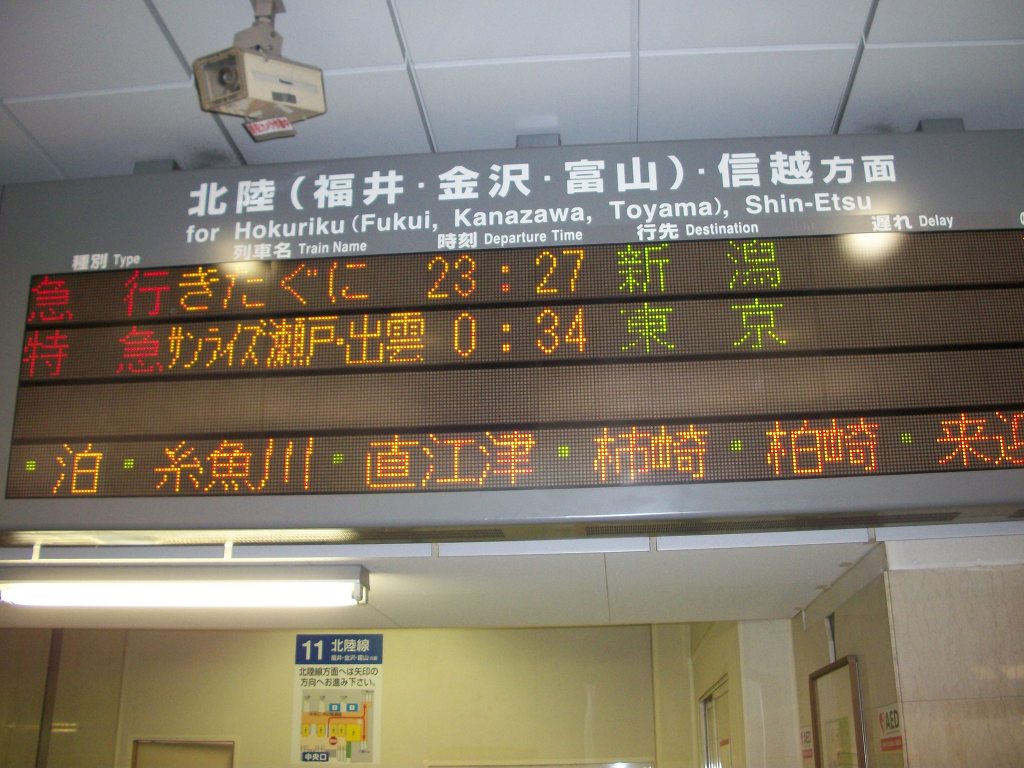 그래서 하는수 없이 저는 오사카 역에 내려 호쿠리쿠 본선과 신에츠 본선으로 가는 열차 목록들을 찍었는데..
