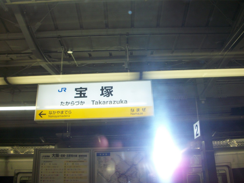 타카라즈카역에 정차를 합니다.. 타카라즈카 역 달대형 역명판입니다...