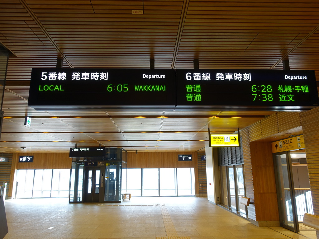 [출발안내를 보시면 6시5분에 로컬 왓카나이행 열차가 있지요? 홋카이도내에서 근성열차 2위입니다. 어쩌면 일본전체에서 근성열차 2위일 수도 있지요]
