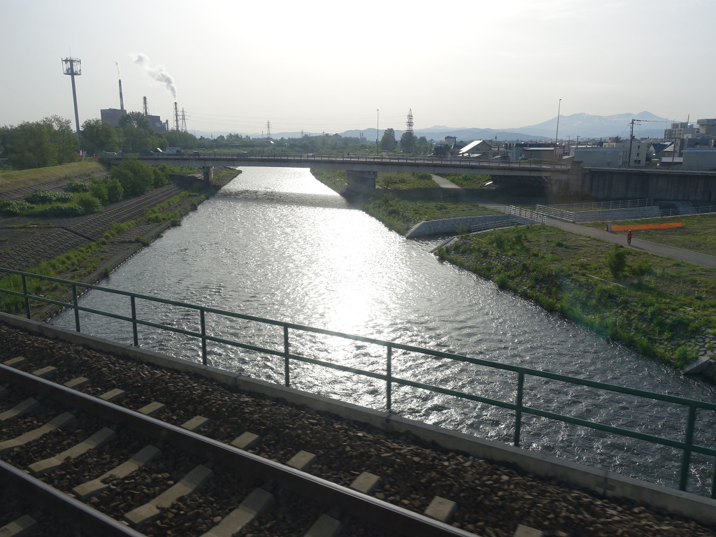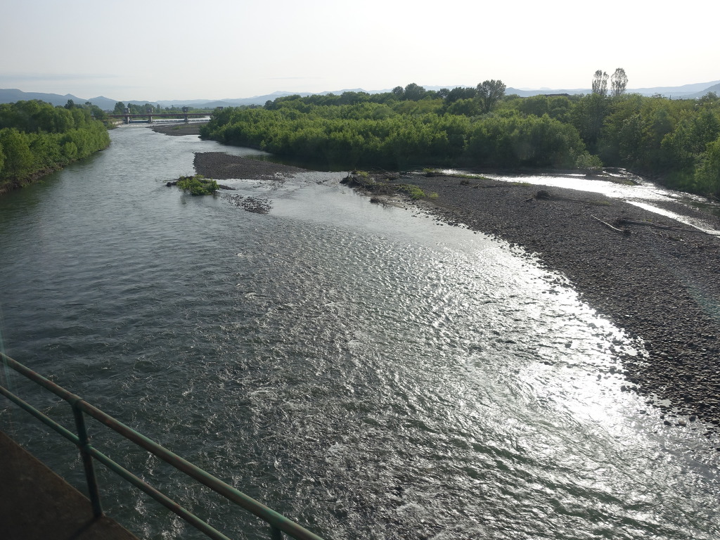 [牛朱別川(우슈베츠가와)를 건너고 있습니다. 홋카이도내에서 유명한 이시카리가와의 지류(支流)입니다.