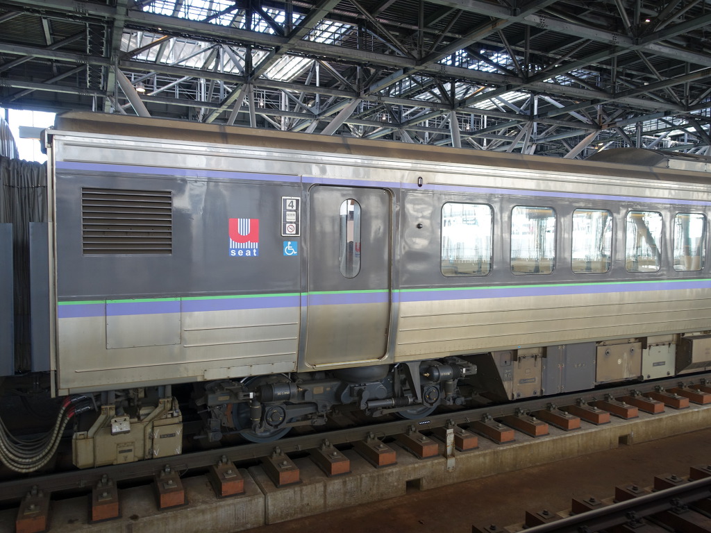 [6시에 출발하는 슈퍼카무이4호 삿포로행입니다. 4호차가 U시트입니다.]