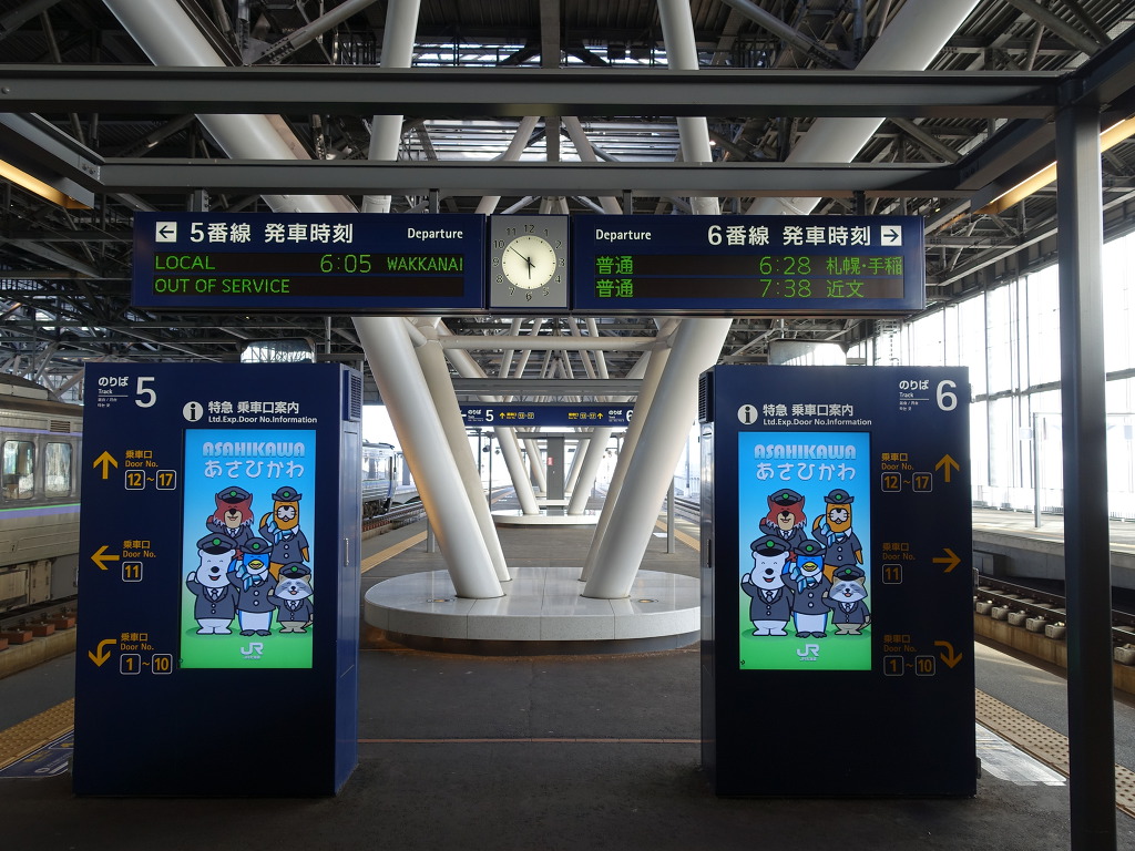 [신아사히카와역에 도착하였습니다. 왜인지 모르겠으나 新자가 붙어있으면 신칸센과 연계되는 역인 것도 같으나 꼭 그런것만은 아닙니다. 여담으로 원래 홋카이도신칸센은 아사히카와까지 계획되었다고 하지만 현재는 삿포로까지 생각하고 있지요]