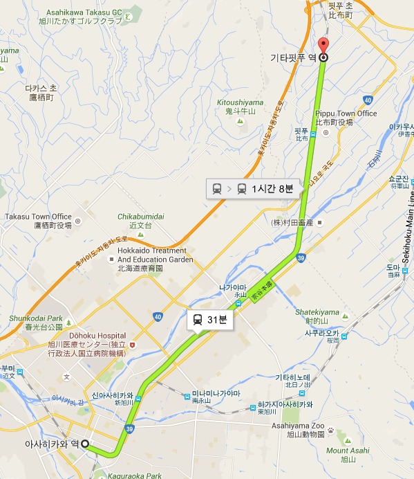 ① 타키카와 → 쿠시로, 이동거리 : 308.4Km, 소요시간 : 8시간 27분