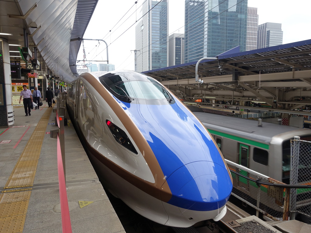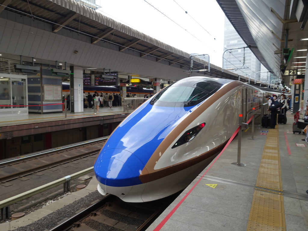 [건너편에는 대량운송의 대명사인 E4계 MAX토키입니다. 예전에는 토호쿠신칸센 구간에서도 볼 수 있었지만 현재는 죠에츠신칸센의 주력이 되었습니다.]
