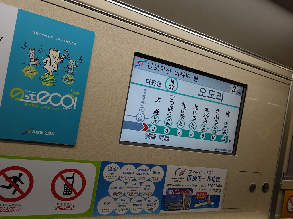 [호텔에서 도보3분거리에 지하철역이 있습니다. 삿포로역까지 걸어갈 수도 있지만 지하철이 편리하므로~]