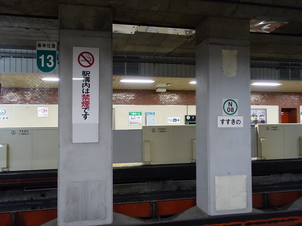 [스스키노역은 가동식 홈도어가 설치되어 있습니다.]