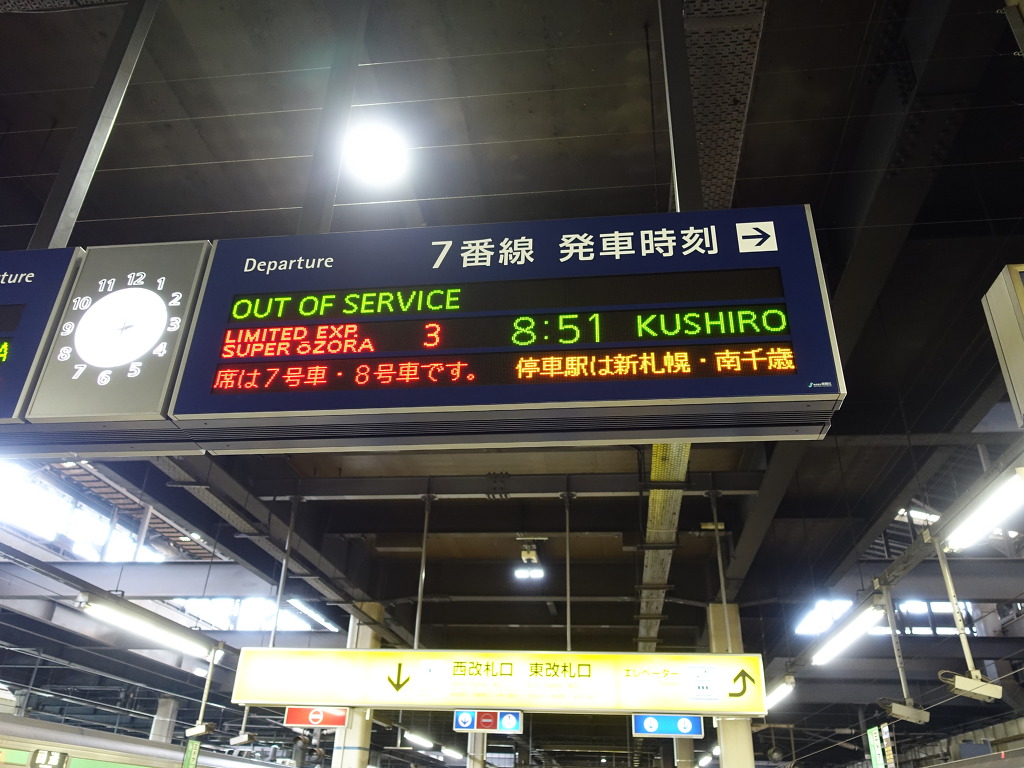 [제가 이용할 열차는 7번홈에서 출발하게 됩니다. 쿠시로까지 무려 4시간이상 소요됩니다.]