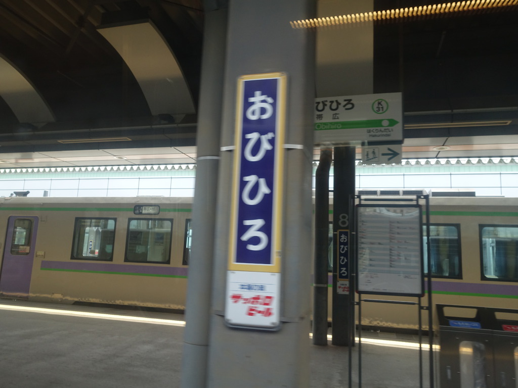 [네무로본선의 중심되는 역중 하나인 오비히로역입니다. 네무로본선의 타키카와 ~ 오비히로간의 쾌속등급은 이 역 까지만 운행됩니다. 시간이 난다면 이 곳에서 내려 ‘부타돈’을 먹고싶지만 일정상 이 곳에 내릴 여유는 없었지요 특급1호를 탔더라면 가능했을지 모르지만요]