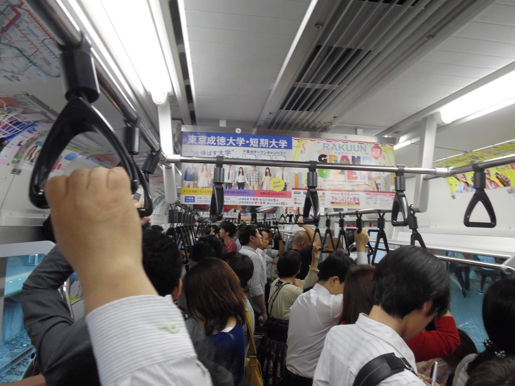 우에노-오카치마치 사이는 차내 혼잡도가 가장 높은 구간 중 하나죠. 그나마 지금 9시를 넘었기 때문에 이 정도입니다.