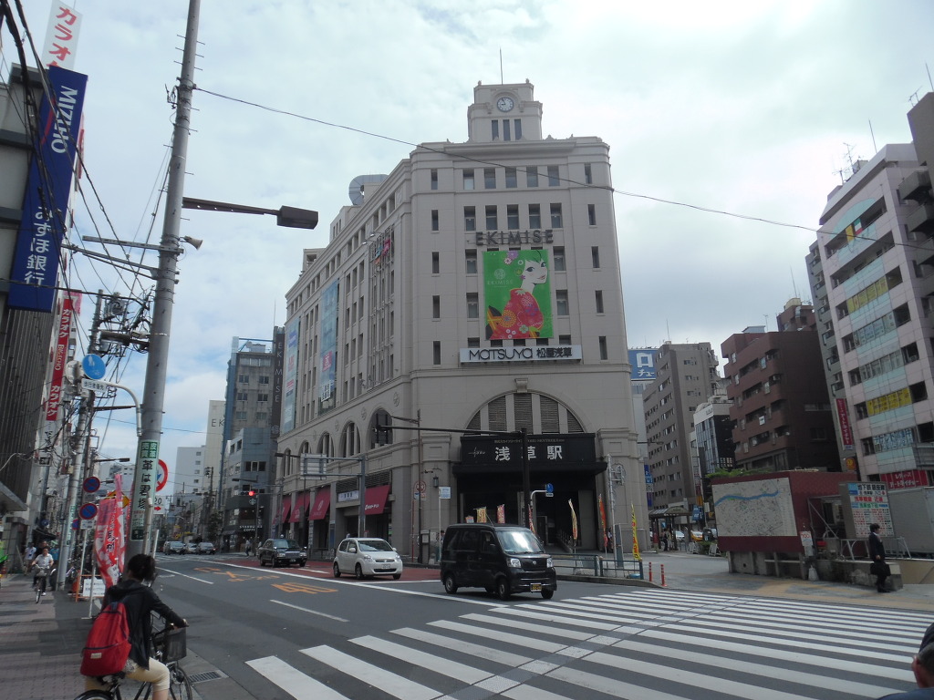 이 역사(驛舍)는 1931년에 관동 최초로 백화점(마츠야)이 입주한 역으로 개업했는데, 1974년에 외벽에 알루미늄 판을 덧대면서[당시 사진] 개통 당시의 모습이 없어졌으나 2012년에 리뉴얼 작업을 통해 예전의 모습을 다시 볼 수 있게 되었습니다.