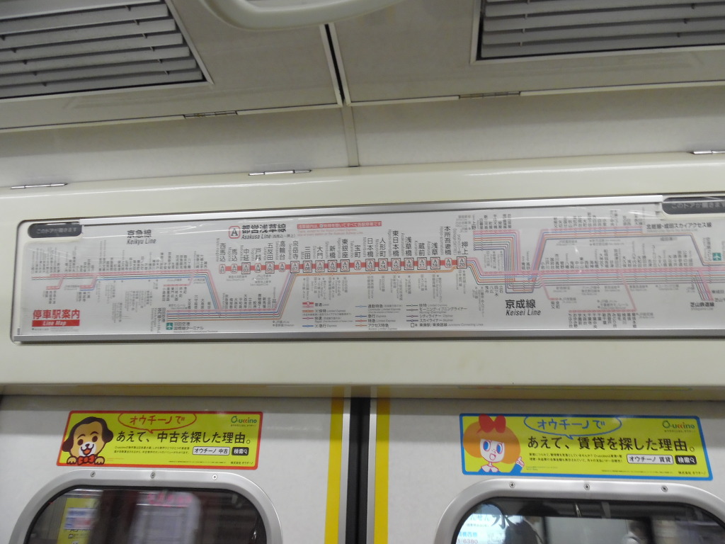 아사쿠사선 노선도. 직통운행하는 케이큐/케이세이 노선도도 포함하고 있습니다.