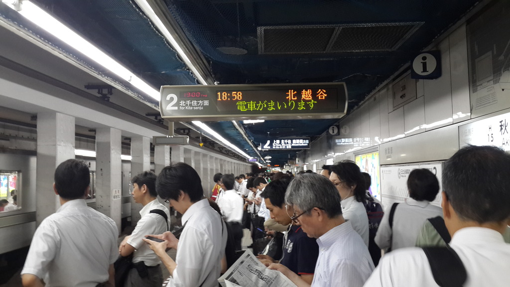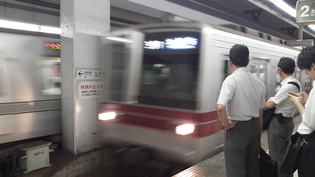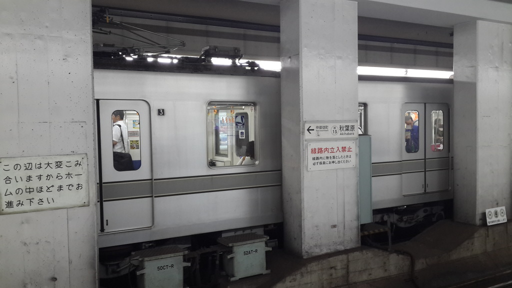 히비야선 아키하바라역입니다. 도심으로 들어가는 반대편 열차는 한산하네요.