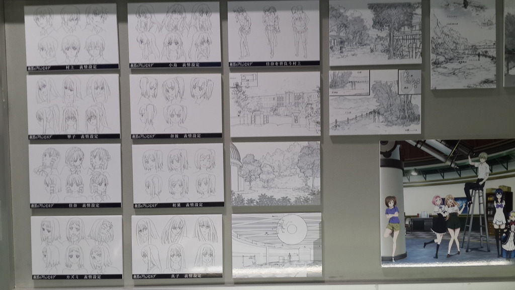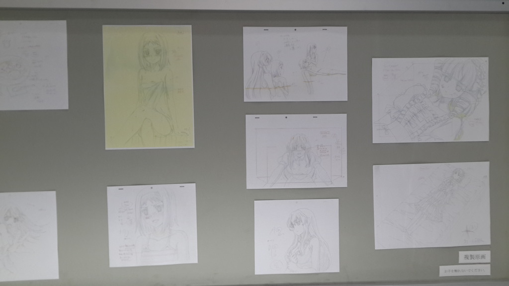이 사진은 애니메이션을 만들 때 작화의 기초가 되는 인물의 표정과 구도, 배경 등을 짜놓은 도안입니다.