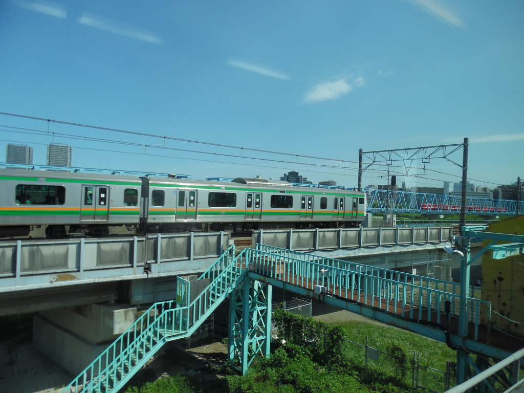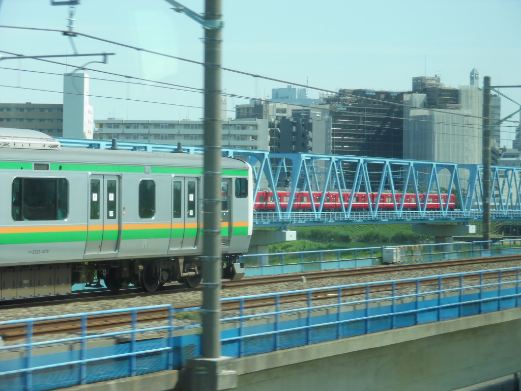 도카이도선 E231계와 저 멀리 보이는 게이케이큐 열차