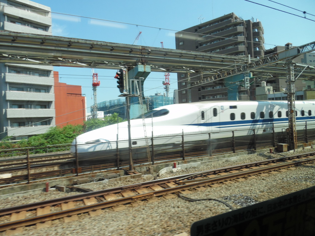 도카이도 신칸센 N700계 열차가 지나갑니다.
