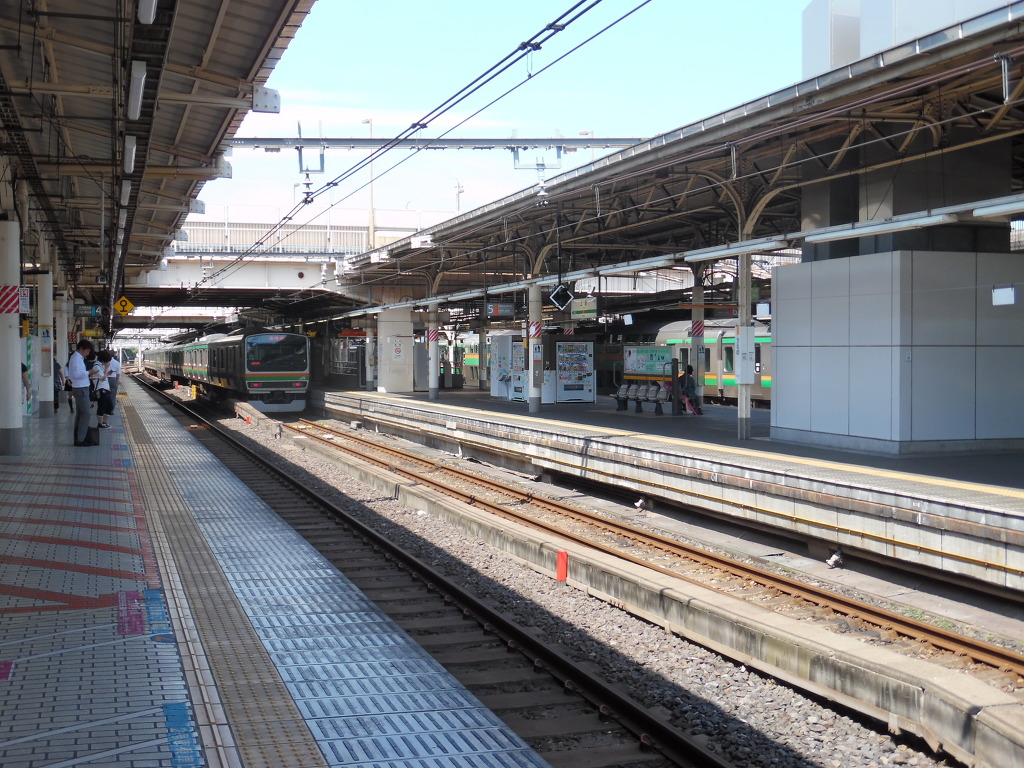 야마노테선 외선순환(소토마와리/도쿄,시나가와 방면)과 케이힌토호쿠선 남행(요코하마,오후나 방면)이 정차하죠.